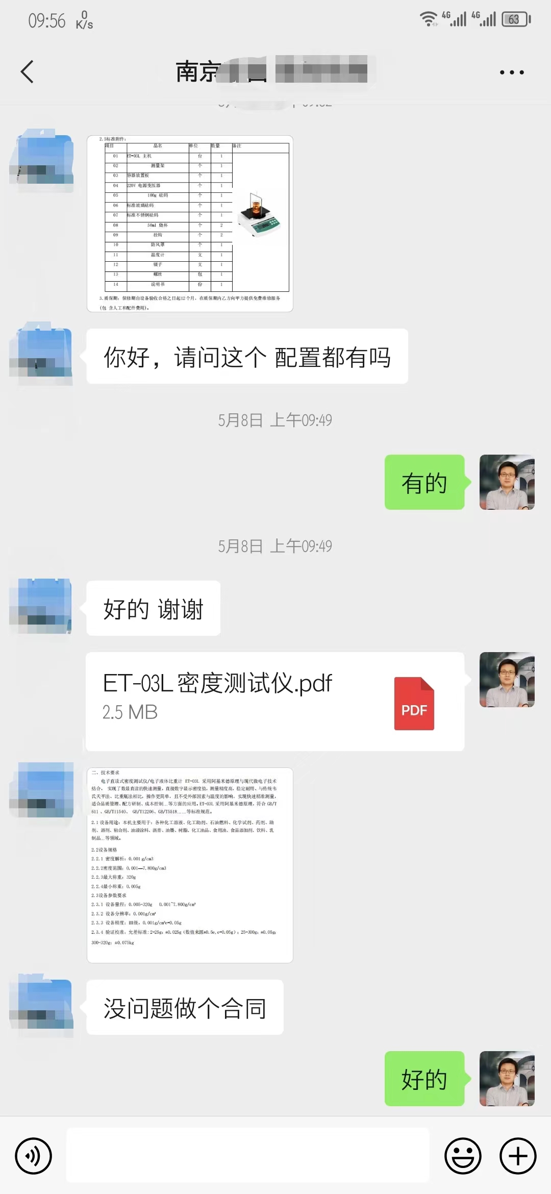 儀器商發(fā)來(lái)液體密度計(jì)ET-03L的配置叁數(shù),確認(rèn)一下就直接讓做合同了。