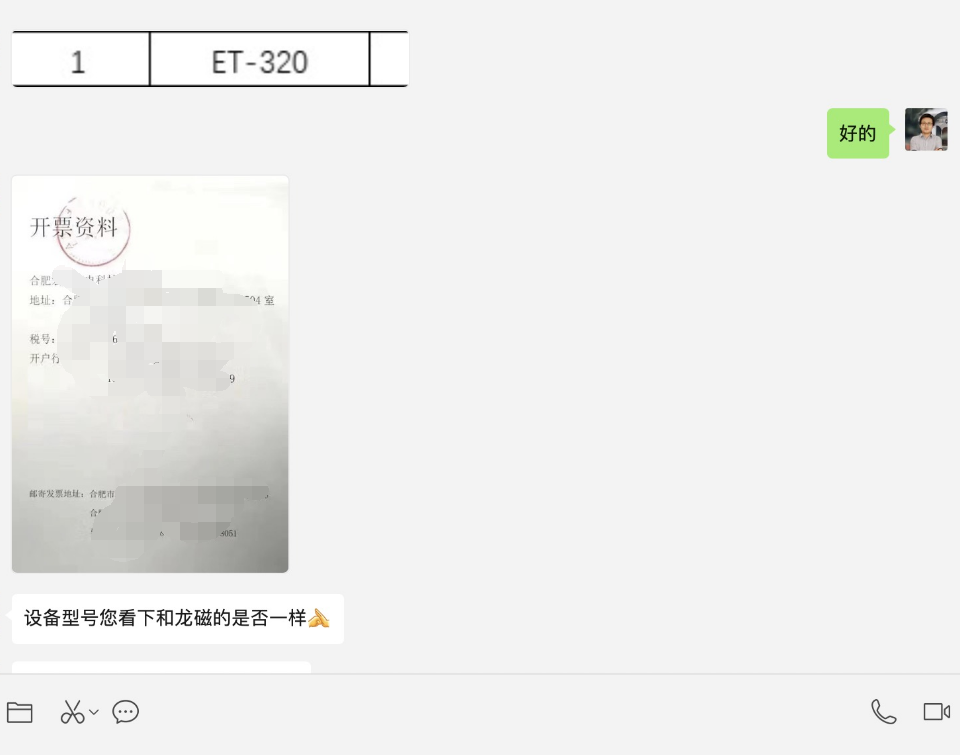 設(shè)備型號(hào)你看下和龍磁的是否一樣??jī)x器商發(fā)來(lái)標(biāo)有需求一臺(tái)密度計(jì)ET-320型號(hào)的信息過(guò)來(lái),確認(rèn)是否和我們供應(yīng)安徽龍磁的型號(hào)是否一樣。