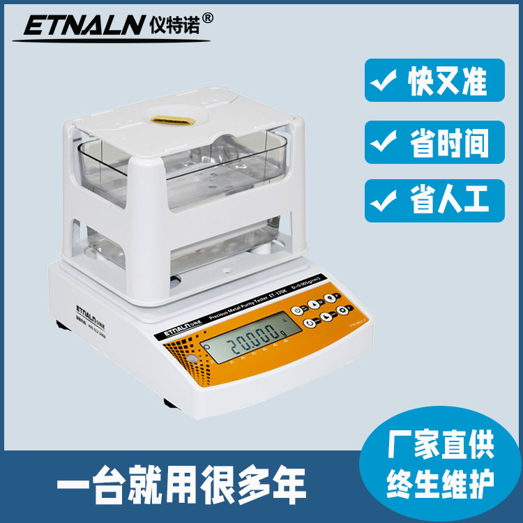 黃金密度計_貴金屬純度檢測儀_黃金首飾檢驗真假的儀器,ET-320K,ET-600K 、ET-1200K系列產品屬升級換代產品,相對于其它競爭產品,本系列產品重點提升了稱重精度,簡化了操作步驟與方式,升級了軟件的應用功能,使得測量結果的可靠性得到進一步提高;并分別具有黃金、鉑金、銀三個含量測量模式及一個合金測量模式。