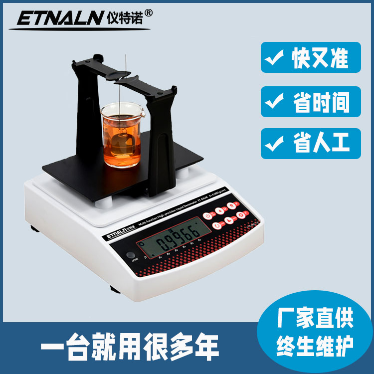 ET-04L高精度液體密度計/液體比重計測量精度說明:ET-04L 密度精度達0.0001 g/cm3,測量范圍:0.0001~7.8000g/cm3(可擴展)