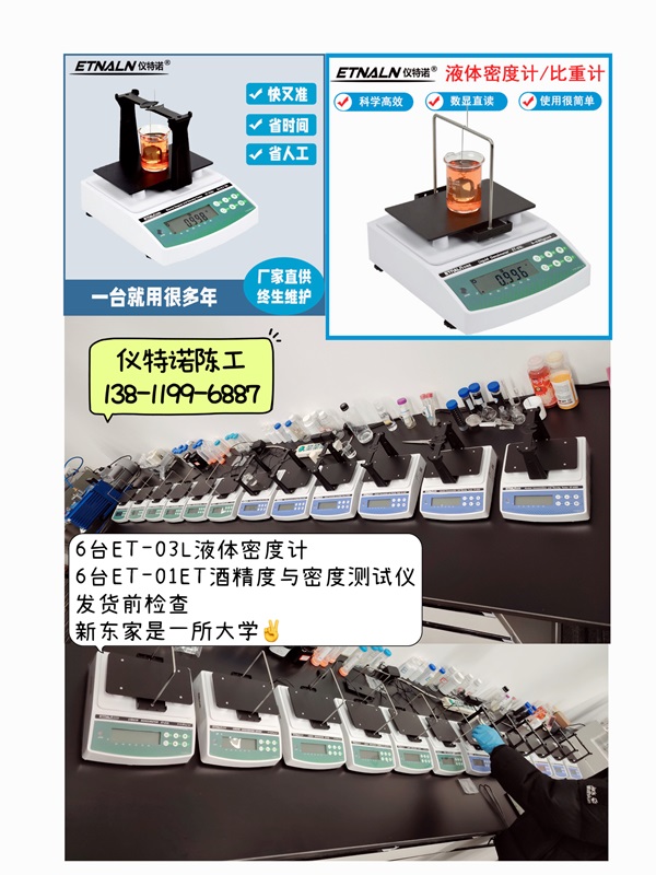 儀特諾6臺(tái)ET-03L液體密度計(jì)和6臺(tái)ET-01ET酒精度與密度測(cè)試儀奔赴湖南農(nóng)業(yè)大學(xué)。